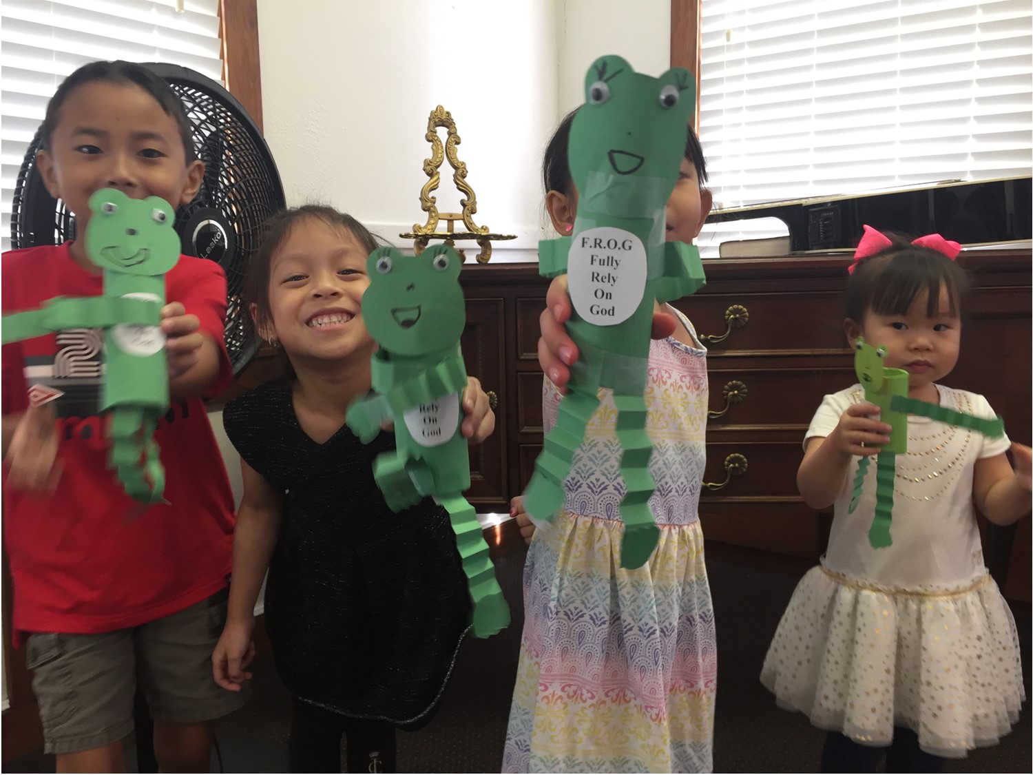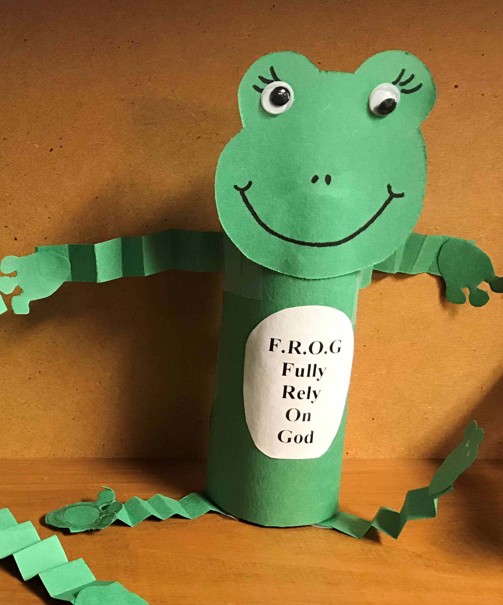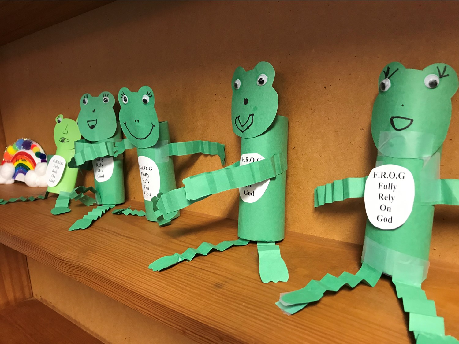 - F.R.O.G. : The kiddos made these F.R.O.G.s to remind them to "Fully Rely On God" for everything and in everything. The children are able to "hope" over life's difficulites as long as they fully rely on the love and grace of God.